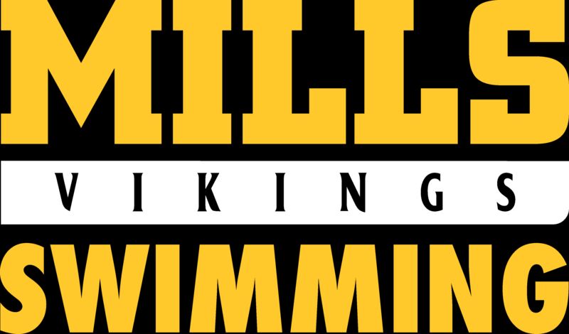 Mills Swimming red tee Logo